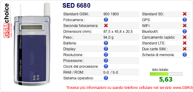 Dati del telefono cellulare SED 6680 sul tuo sito