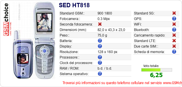 Dati del telefono cellulare SED HT818 sul tuo sito