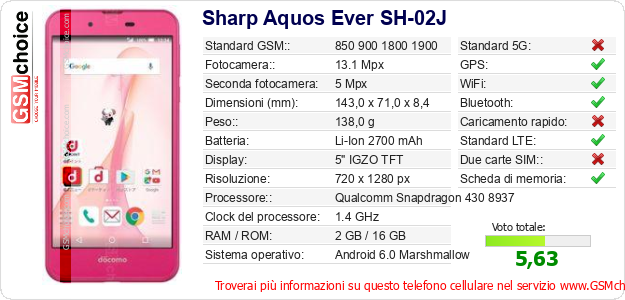 Dati del telefono cellulare Sharp Aquos Ever SH-02J sul tuo sito