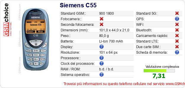 Dati del telefono cellulare Siemens C55 sul tuo sito