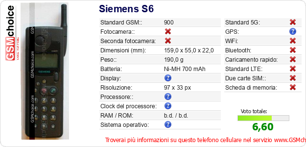 Dati del telefono cellulare Siemens S6 sul tuo sito