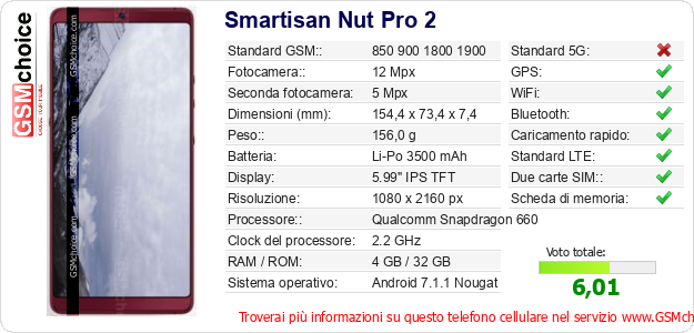 Dati del telefono cellulare Smartisan Nut Pro 2 sul tuo sito