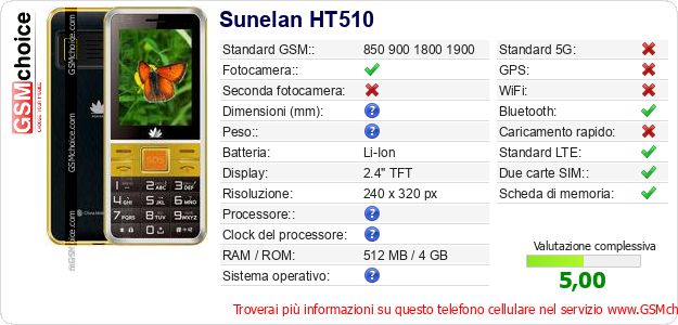 Dati del telefono cellulare Sunelan HT510 sul tuo sito
