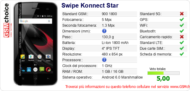 Dati del telefono cellulare Swipe Konnect Star sul tuo sito