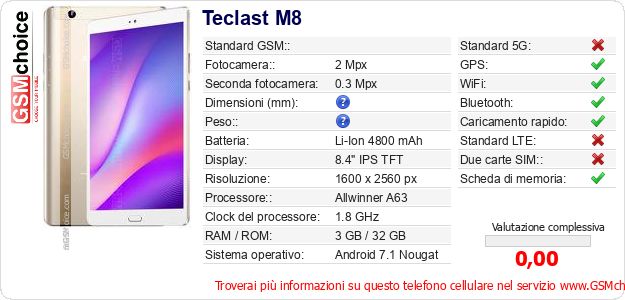 Dati del telefono cellulare Teclast M8 sul tuo sito