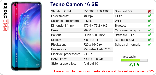 Dati del telefono cellulare Tecno Camon 16 SE sul tuo sito