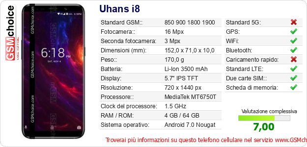 Dati del telefono cellulare Uhans i8 sul tuo sito