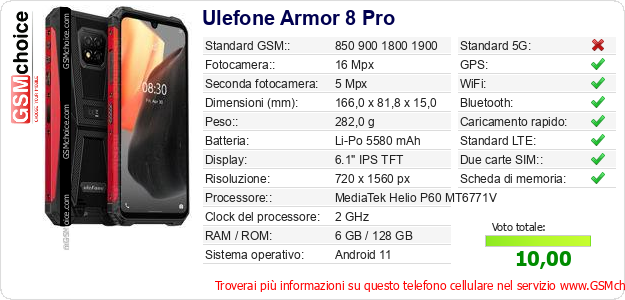 Dati del telefono cellulare Ulefone Armor 8 Pro sul tuo sito