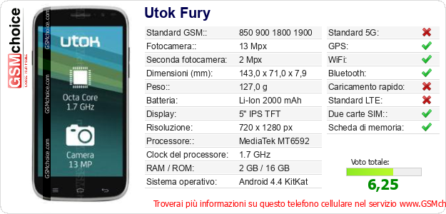 Dati del telefono cellulare Utok Fury sul tuo sito