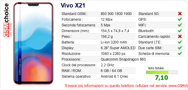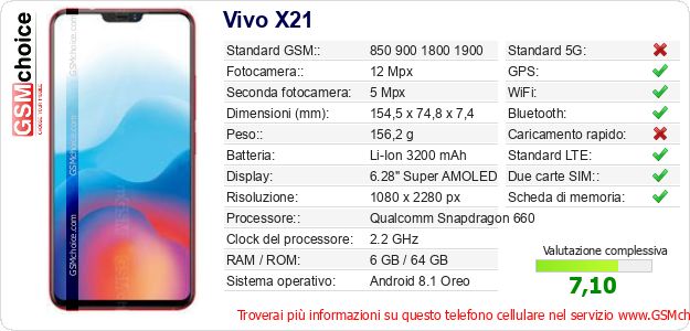 Dati del telefono cellulare Vivo X21 sul tuo sito