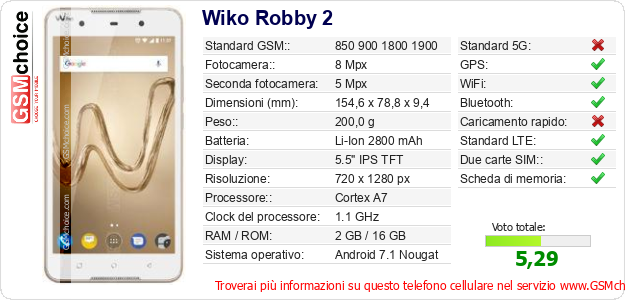Dati del telefono cellulare Wiko Robby 2 sul tuo sito