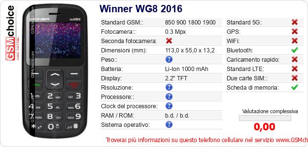 Dati del telefono cellulare Winner WG8 2016 sul tuo sito