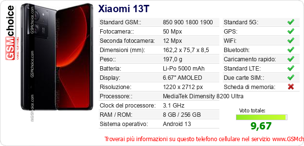 Dati del telefono cellulare Xiaomi 13T sul tuo sito