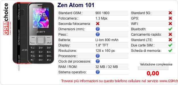 Dati del telefono cellulare Zen Atom 101 sul tuo sito
