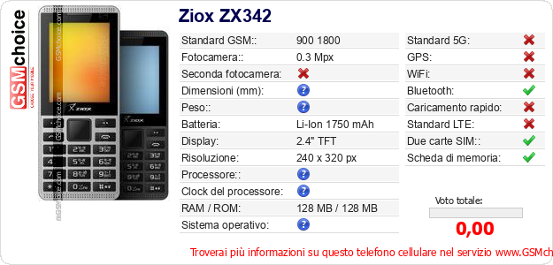 Dati del telefono cellulare Ziox ZX342 sul tuo sito