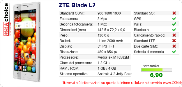 Dati del telefono cellulare ZTE Blade L2 sul tuo sito