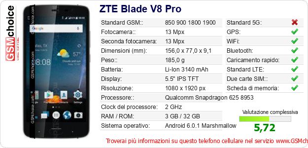 Dati del telefono cellulare ZTE Blade V8 Pro sul tuo sito