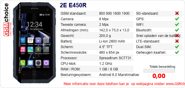 Gegevens van de telefoon 2E E450R op jouw webpagina