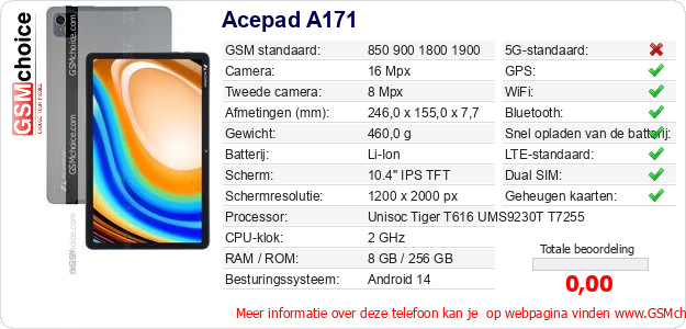 Gegevens van de telefoon Acepad A171 op jouw webpagina