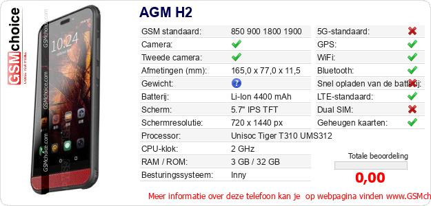 Gegevens van de telefoon AGM H2 op jouw webpagina