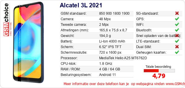 Gegevens van de telefoon Alcatel 3L 2021 op jouw webpagina