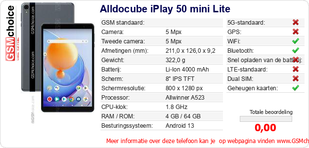 Gegevens van de telefoon Alldocube iPlay 50 mini Lite op jouw webpagina