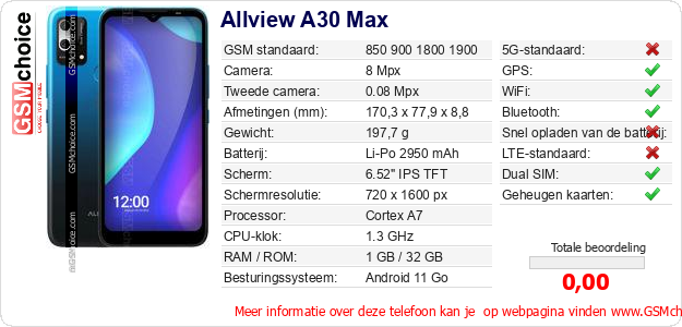 Gegevens van de telefoon Allview A30 Max op jouw webpagina