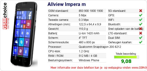 Gegevens van de telefoon Allview Impera m op jouw webpagina