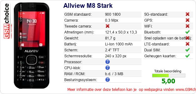 Gegevens van de telefoon Allview M8 Stark op jouw webpagina