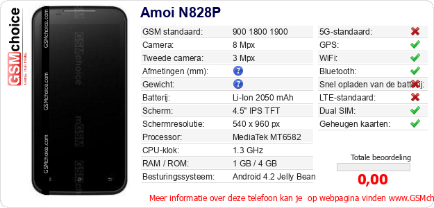 Gegevens van de telefoon Amoi N828P op jouw webpagina