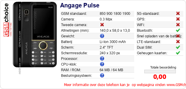 Gegevens van de telefoon Angage Pulse op jouw webpagina