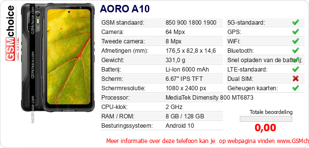 Gegevens van de telefoon AORO A10 op jouw webpagina
