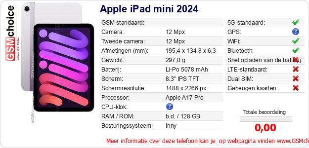 Gegevens van de telefoon Apple iPad mini 2024 op jouw webpagina
