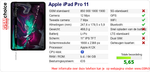 Gegevens van de telefoon Apple iPad Pro 11 op jouw webpagina