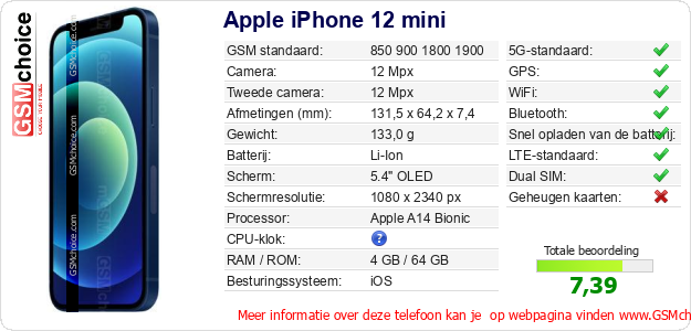 Gegevens van de telefoon Apple iPhone 12 mini op jouw webpagina