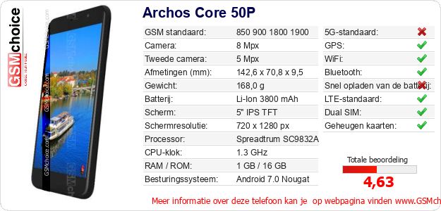 Gegevens van de telefoon Archos Core 50P op jouw webpagina