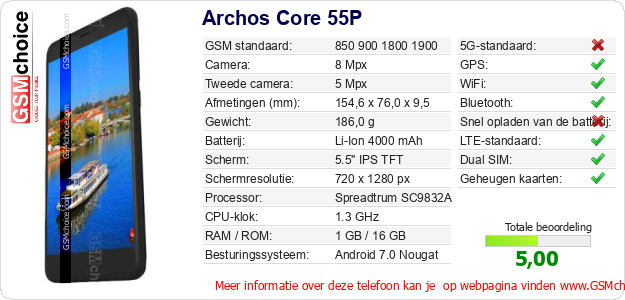 Gegevens van de telefoon Archos Core 55P op jouw webpagina
