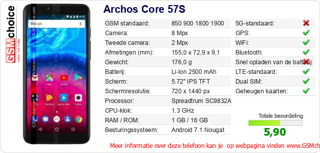 Gegevens van de telefoon Archos Core 57S op jouw webpagina