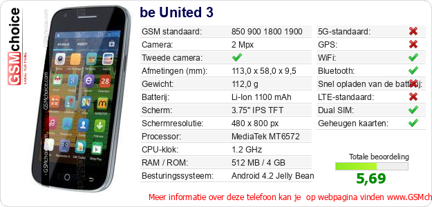 Gegevens van de telefoon be United 3 op jouw webpagina