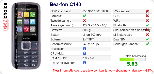 Verkoop je op ebay.com? Heb je jouw eigen webpagina? Als je de basisgegevens over Bea-fon C140 ergens wilt publiceren, dan is het heel simpel. Het is voldoende om deze code te kopiëren en op jouw webpagina te plakken:Als je deze code plakt, dan wordt de onderstaande afbeelding getoond: