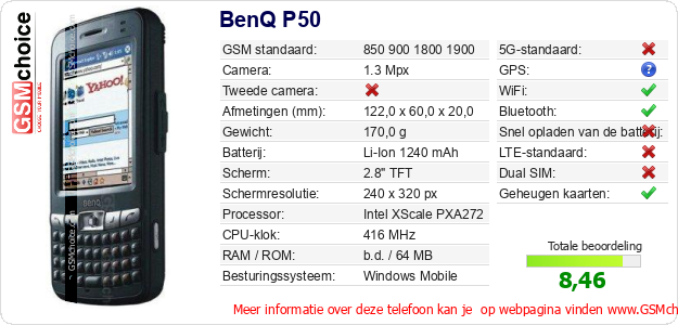 Gegevens van de telefoon BenQ P50 op jouw webpagina