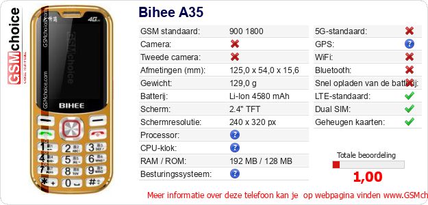Gegevens van de telefoon Bihee A35 op jouw webpagina