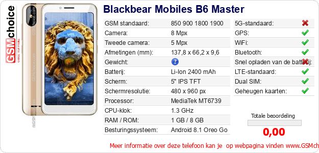 Gegevens van de telefoon Blackbear Mobiles B6 Master op jouw webpagina