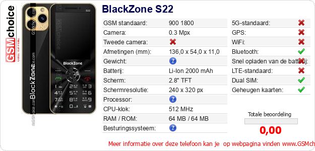 Gegevens van de telefoon BlackZone S22 op jouw webpagina