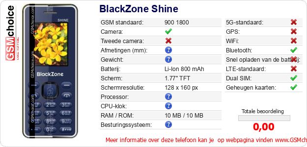 Gegevens van de telefoon BlackZone Shine op jouw webpagina