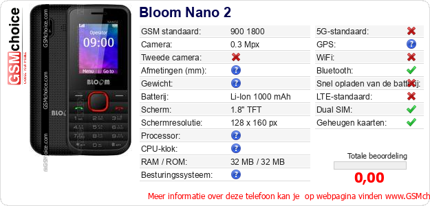 Gegevens van de telefoon Bloom Nano 2 op jouw webpagina