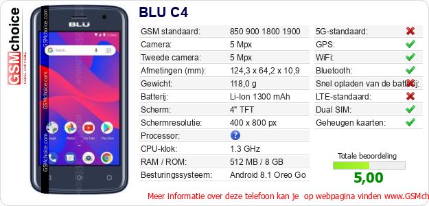 Gegevens van de telefoon BLU C4 op jouw webpagina