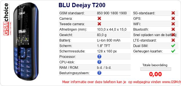 Gegevens van de telefoon BLU Deejay T200 op jouw webpagina