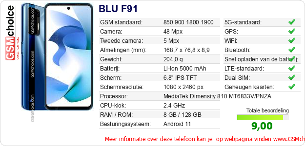 Gegevens van de telefoon BLU F91 op jouw webpagina