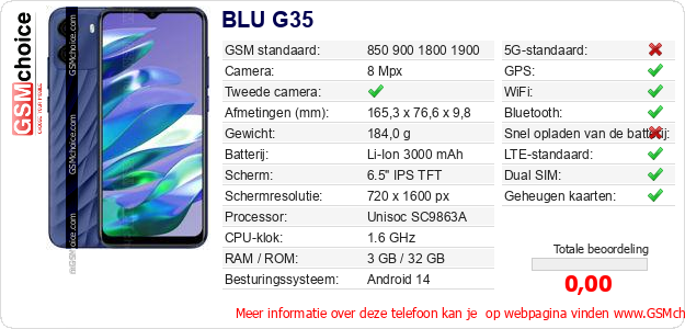 Gegevens van de telefoon BLU G35 op jouw webpagina